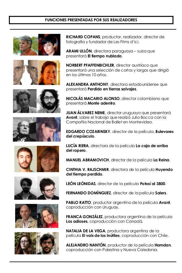 Las proyecciones para la 14° edición tendrán lugar en 4 sedes: Alianza Francesa de Buenos Aires (Av. Córdoba 946), Fundación Proa (Av. Don Pedro de Mendoza 1929), Cine Arte Multiplex (Av. Cabildo 2829) y Cine Gaumont (Av. Rivadavia 1635)